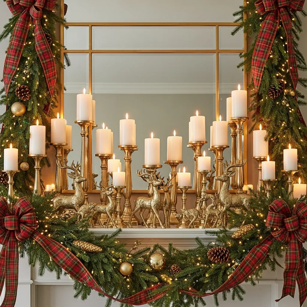 The mantel is the focal point of your living room during the holidays, and Ralph Lauren’s decor pieces can make it a showstopper. Begin with a lush garland across the mantel, complemented by candles in metallic holders, adding a sense of elegance. Incorporate subtle details like decorative reindeer figurines, golden pinecones, or classic plaid accents to complete the festive look.