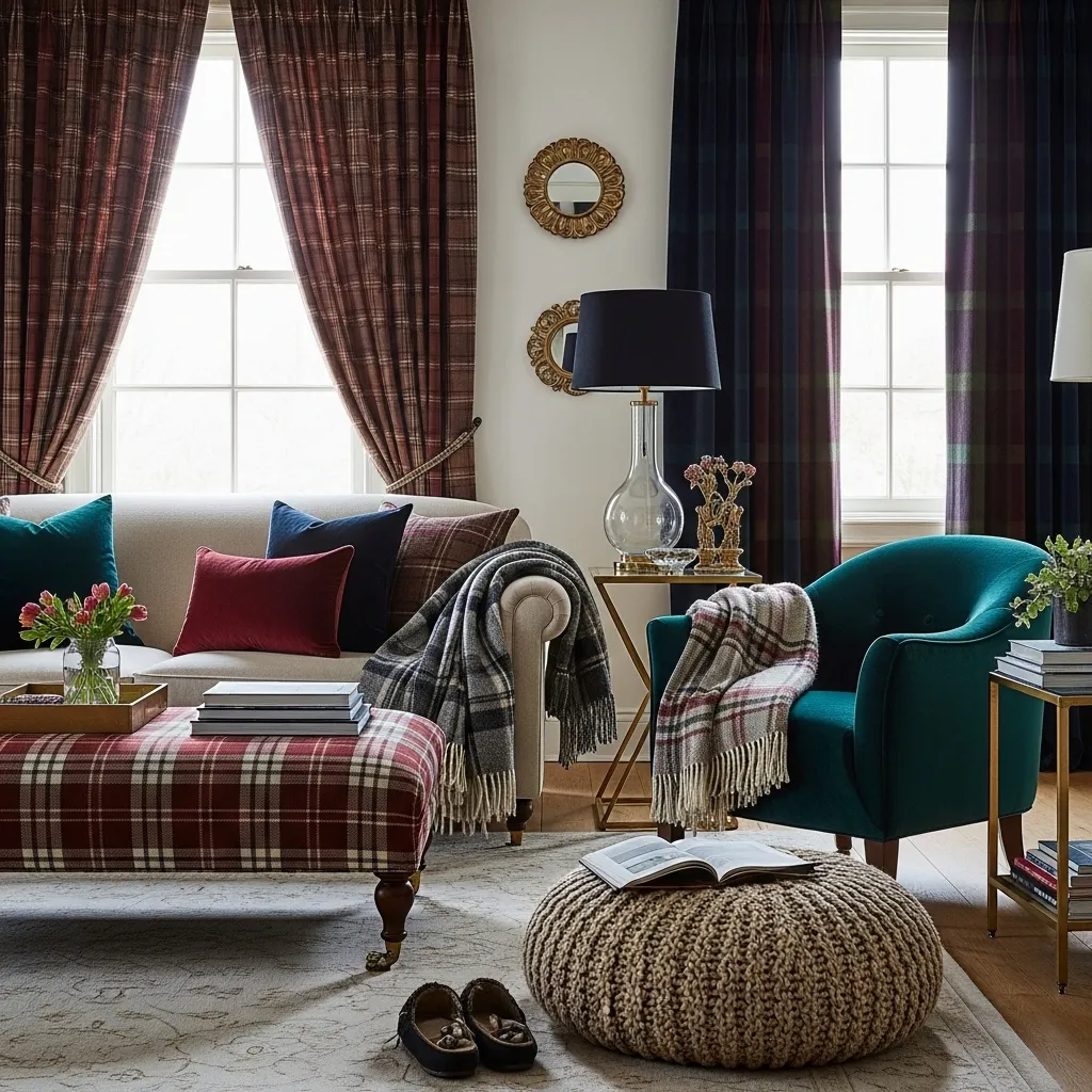8. Incorporating Plaid and Velvet Accents in Your Living Room Decor