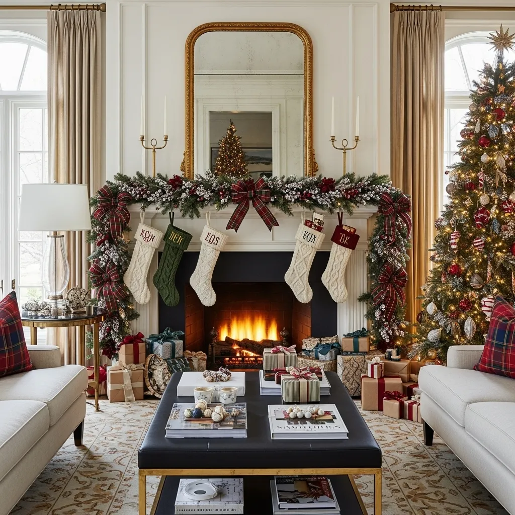 Styling Tip: Hang stockings that match your color scheme—gold or silver for a more modern look, or red and green for a traditional vibe. For a polished finish, consider using elegant ribbon or metallic hooks for a classy, coordinated appearance.
