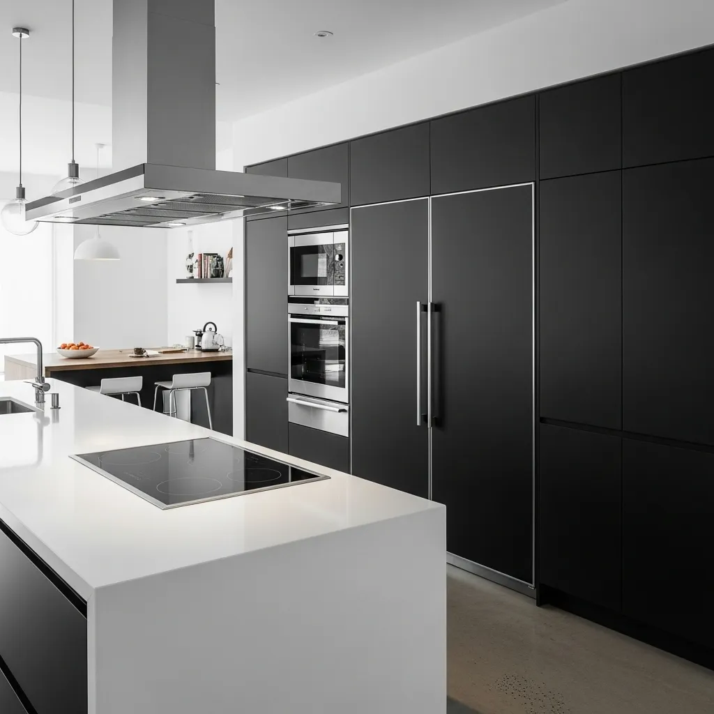 Design Tip: High-end, integrated appliances are a game-changer for an elegant kitchen. These professional-grade appliances blend seamlessly with your cabinetry, giving your kitchen a polished, sophisticated look while offering exceptional performance. Look for energy-efficient models that also save space, like built-in refrigerators, dishwashers, and ovens.