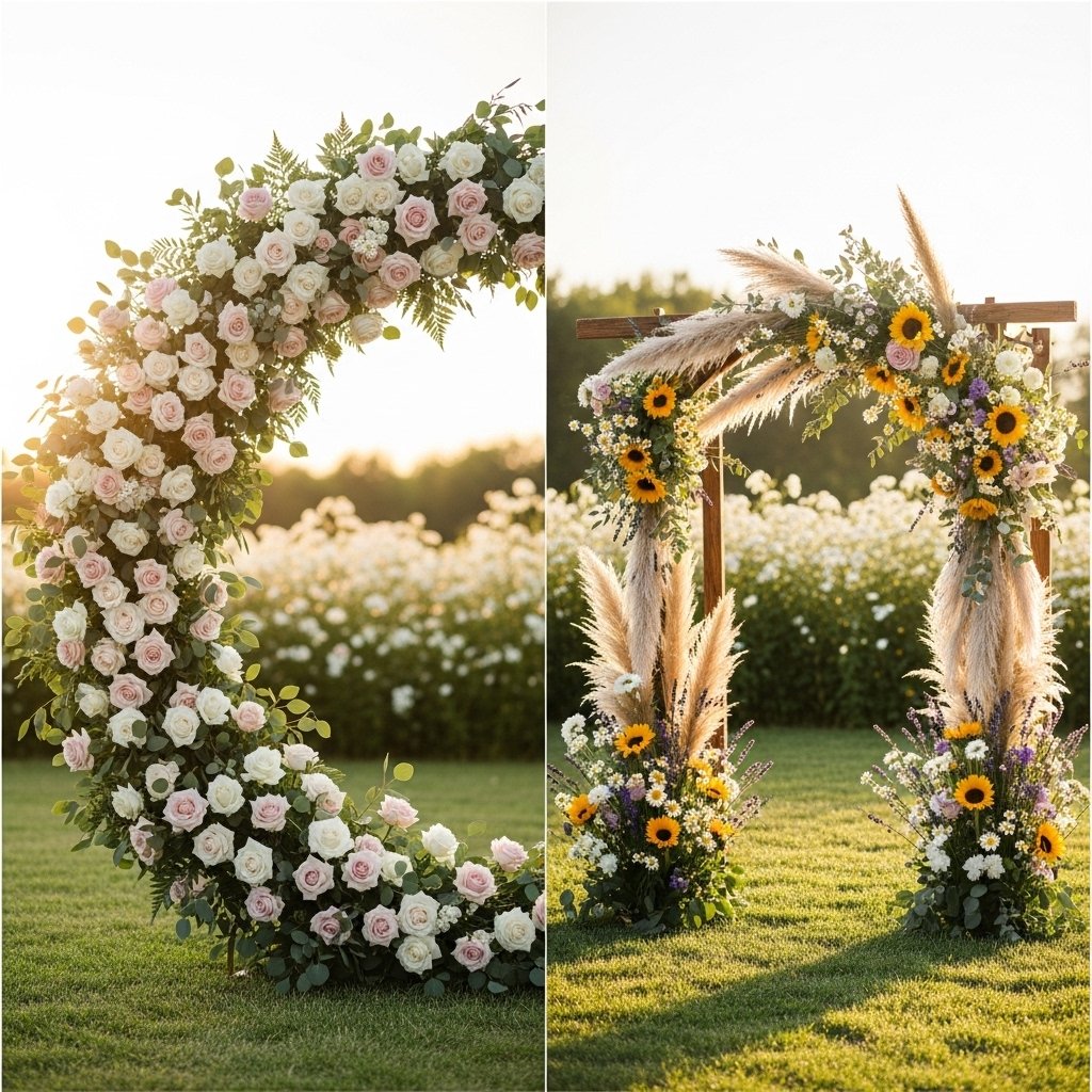 Pro Tip: Match the arch flowers with your planned Engagement Hairstyles Front Look so your style and décor are perfectly in harmony for photographs.