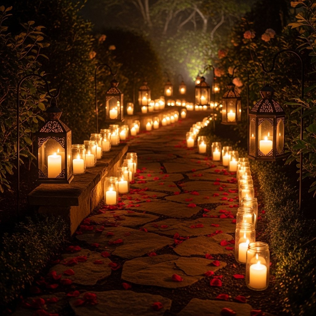 Pro Tip: Scatter rose petals along the path for a truly enchanting effect.
