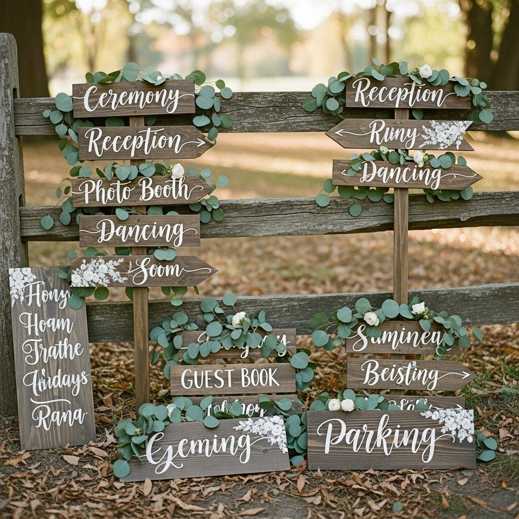 Wooden signs not only guide your guests but also add rustic charm to your event décor. Use them for directions (“To the Bar,” “Dance Floor,” “Photo Booth”), welcome messages, or even seating arrangements.