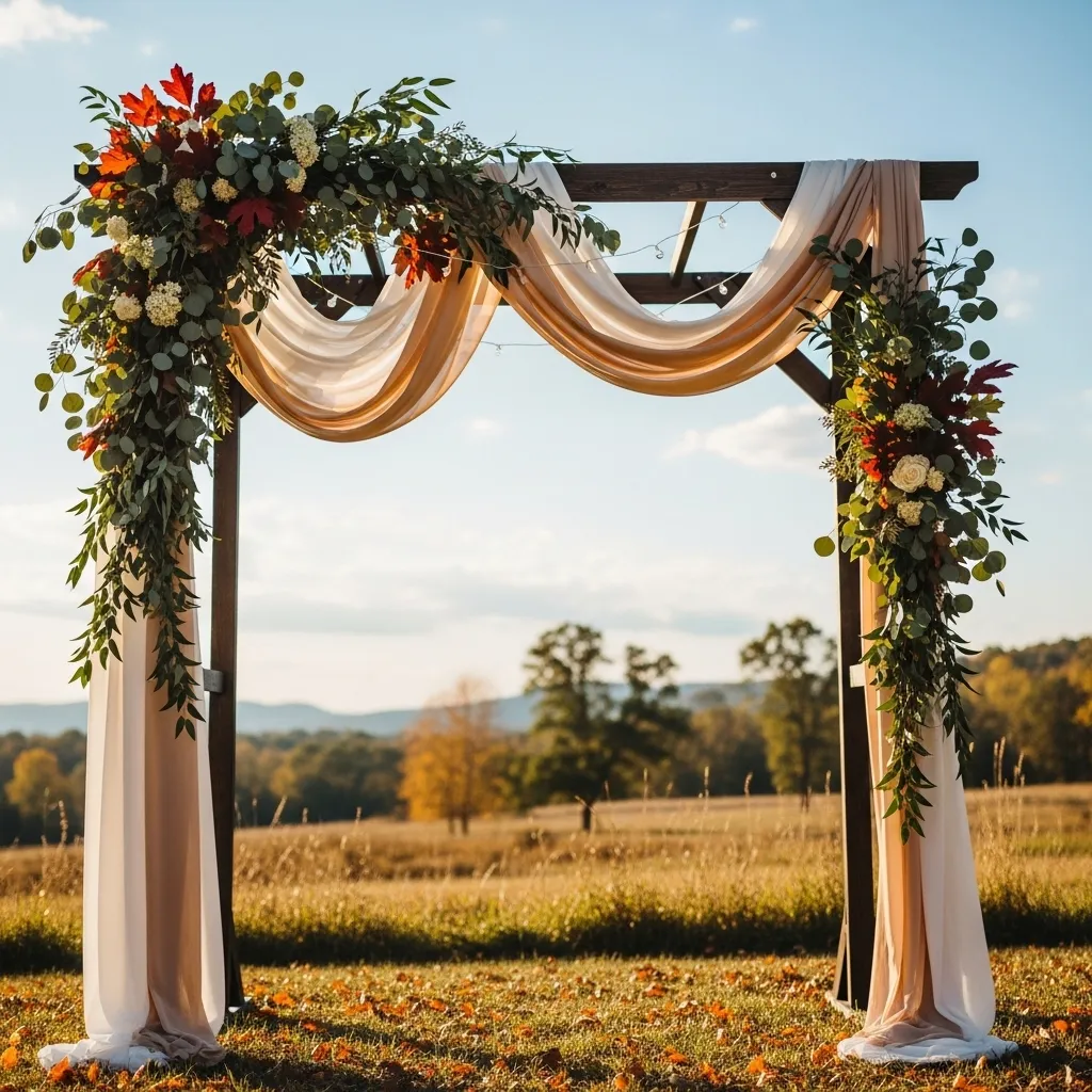 Instead of renting expensive arches or installations, create a DIY ceremony backdrop. Draped fabric, seasonal greenery, or a simple wooden frame can transform your altar space affordably. Incorporating autumn colors like burnt orange, burgundy, and deep green instantly ties the design to the season.