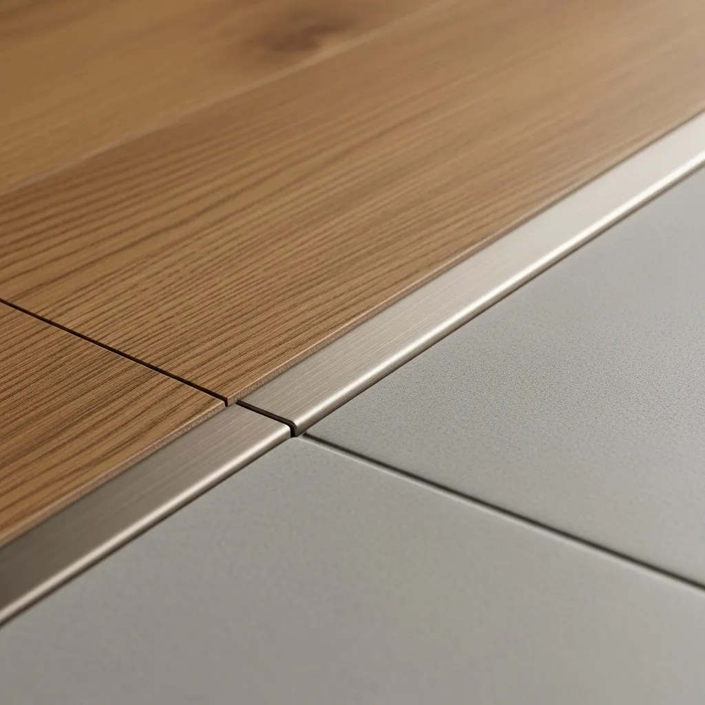 Styling Tip: Choose transition strips that match either the wood or tile color to make the joint less noticeable, or opt for contrasting strips to make the transition a deliberate design feature. For a cohesive look, use metal transition strips that complement both materials.