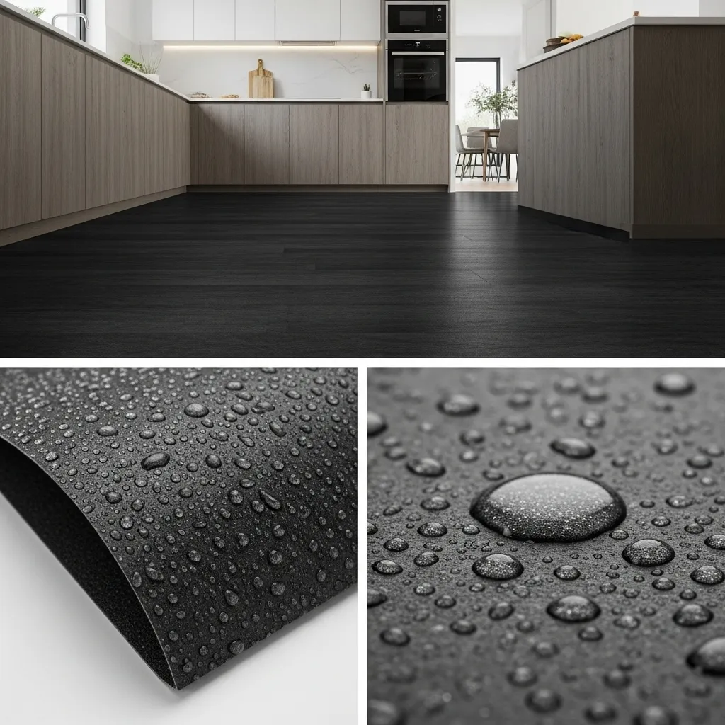 Styling Tip: Use waterproof vinyl in lighter colors to enhance the kitchen’s spacious feel, or choose dark tones for a more sophisticated, elegant look. Waterproof vinyl is available in various designs, including wood, tile, and stone effects.