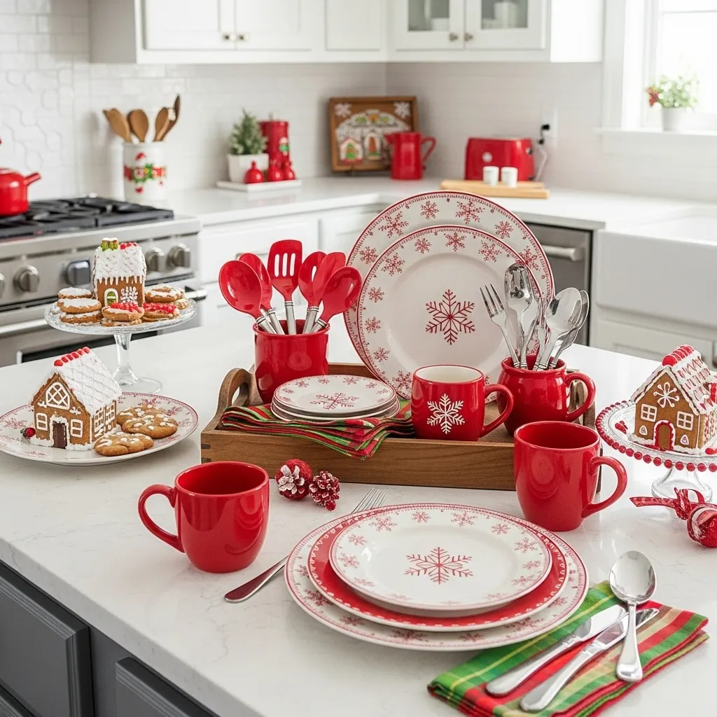 Why It Works: Holiday dishware not only enhances the festive atmosphere of your kitchen island but also adds a touch of nostalgia and warmth. These items are practical and can be used for both holiday meals and casual get-togethers.