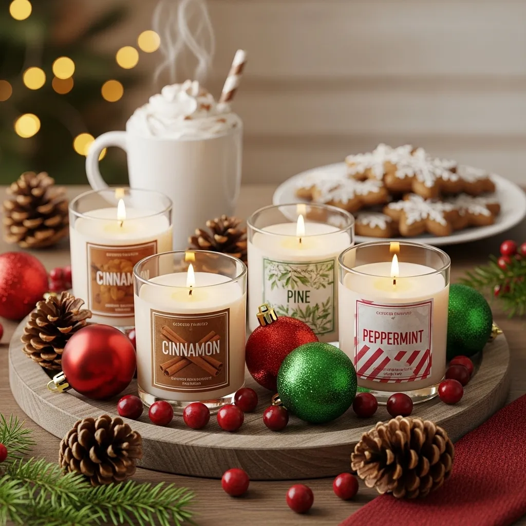 Why It Works: Scented candles not only add a cozy, intimate feel but also enhance the holiday atmosphere by invoking familiar Christmas scents. Lighting them on your island adds a warm, inviting touch that complements your decor.