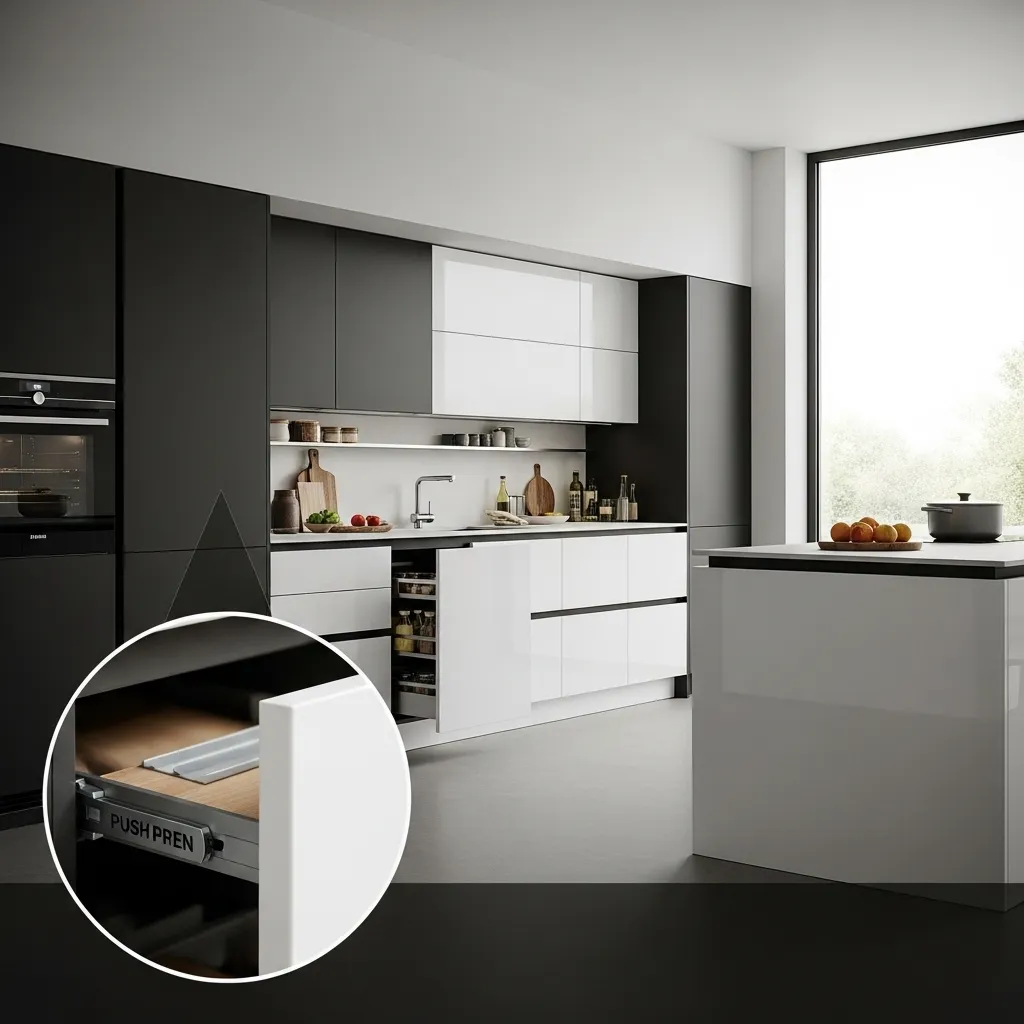 - Install push-to-open or integrated handles to keep the design simple.