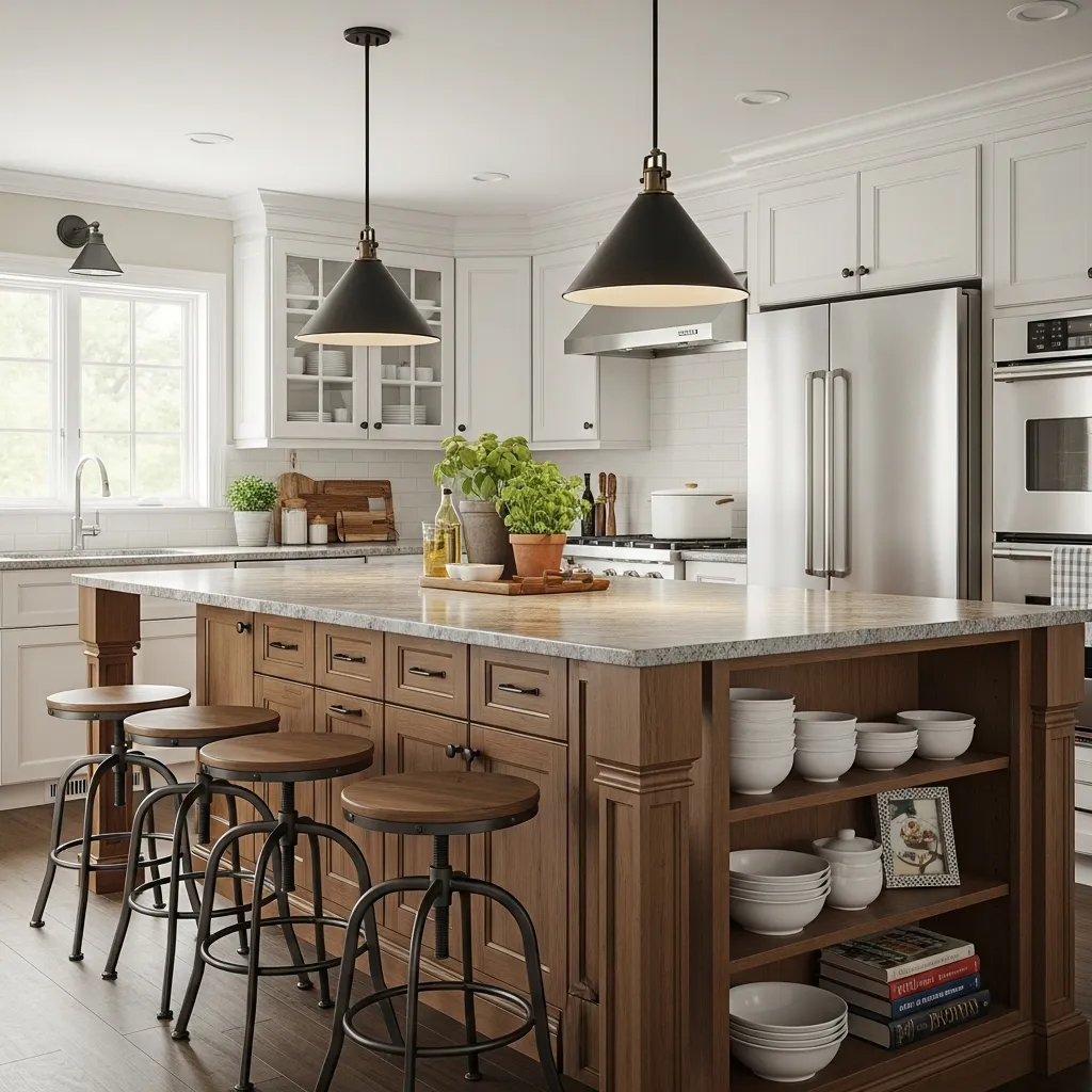 - Add pendant lighting above the island to highlight the space.