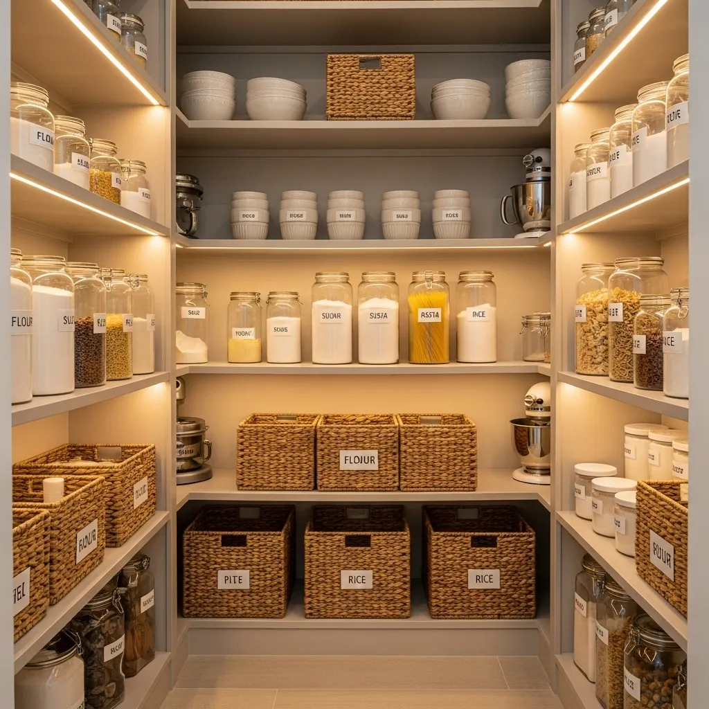 - Keep the pantry organized with designated spaces for each type of food.