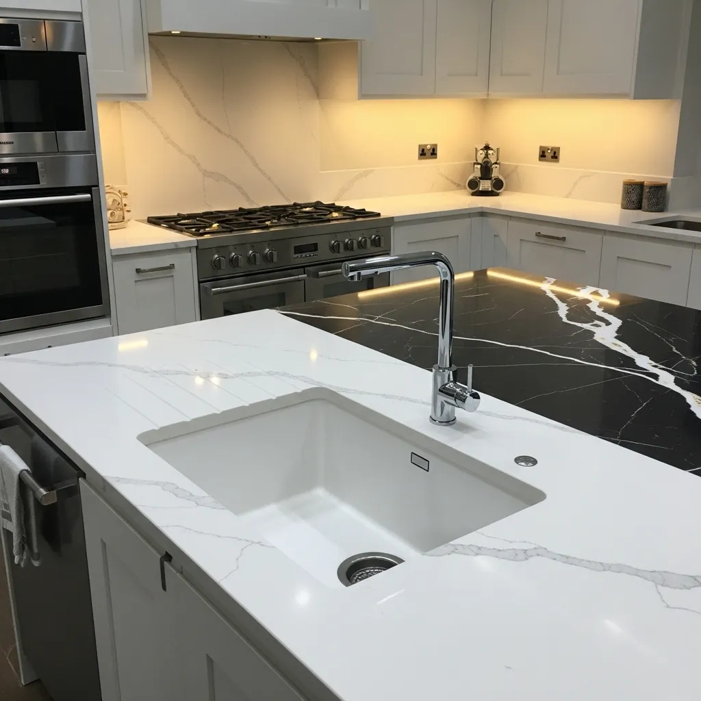 - Choose light-colored quartz for a clean, modern look or dark marble for a sophisticated contrast.