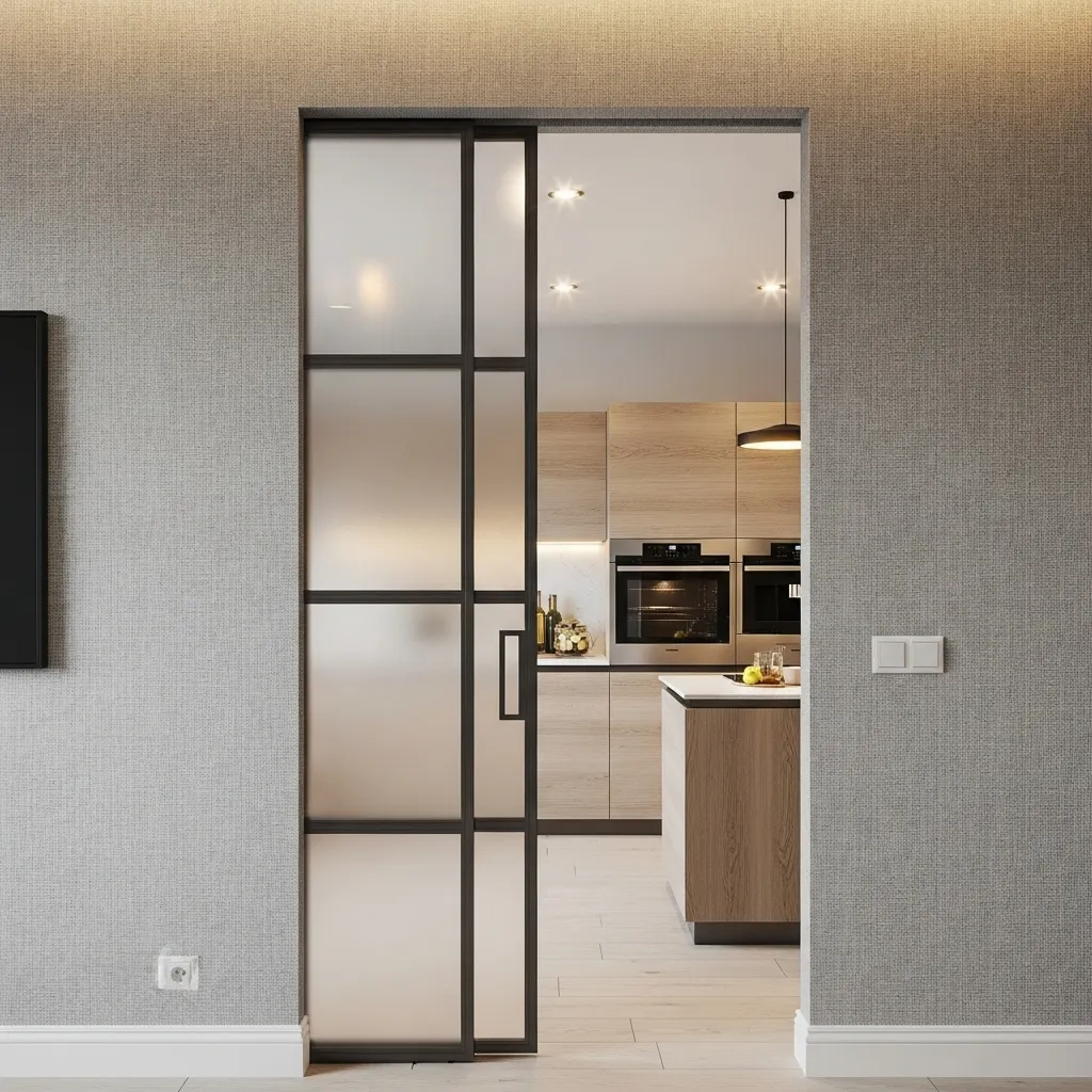Why It Works: Sliding or pocket doors eliminate the need for swinging doors, making the kitchen feel more spacious and reducing clutter in small spaces.