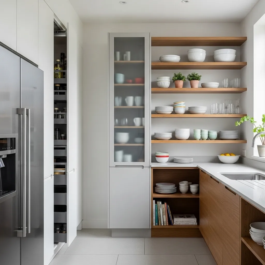 Why It Works: Pull-out storage solutions are a great way to maximize space in your kitchen. These clever designs allow you to store items out of sight while keeping everything within easy reach.