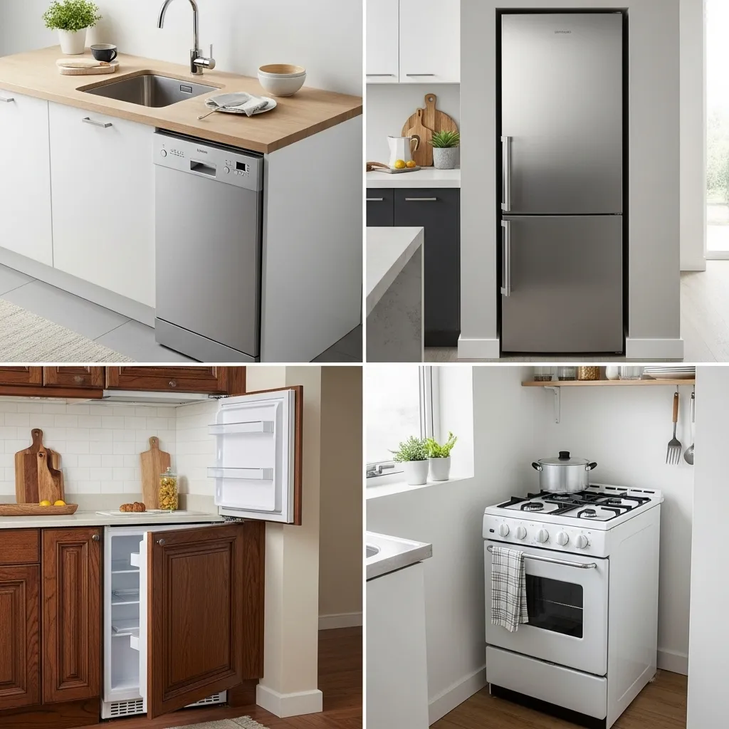 - Choose slim dishwashers, narrow refrigerators, or smaller stoves to save space while maintaining efficiency.