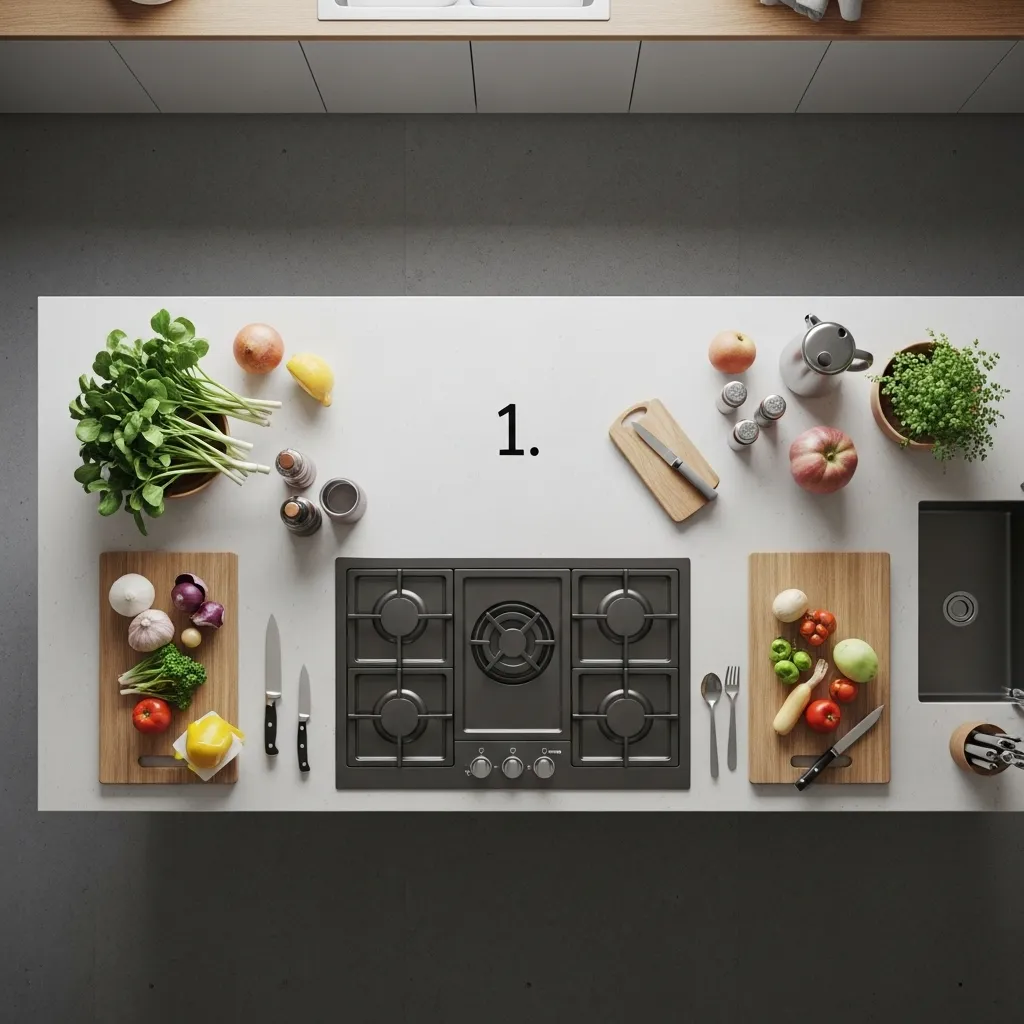 - Use smooth, durable materials like granite, quartz, or butcher block for the prep area.