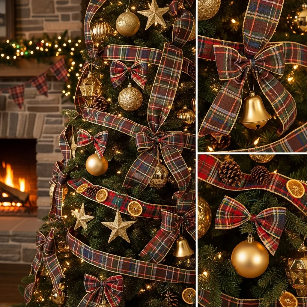 - Drape plaid ribbons (especially red, green, and navy tartan) across the branches of the tree.