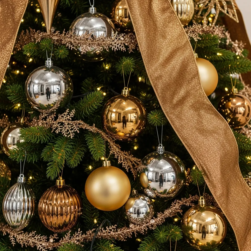 - Mix gold, silver, and bronze ornaments for a beautiful metallic sheen.