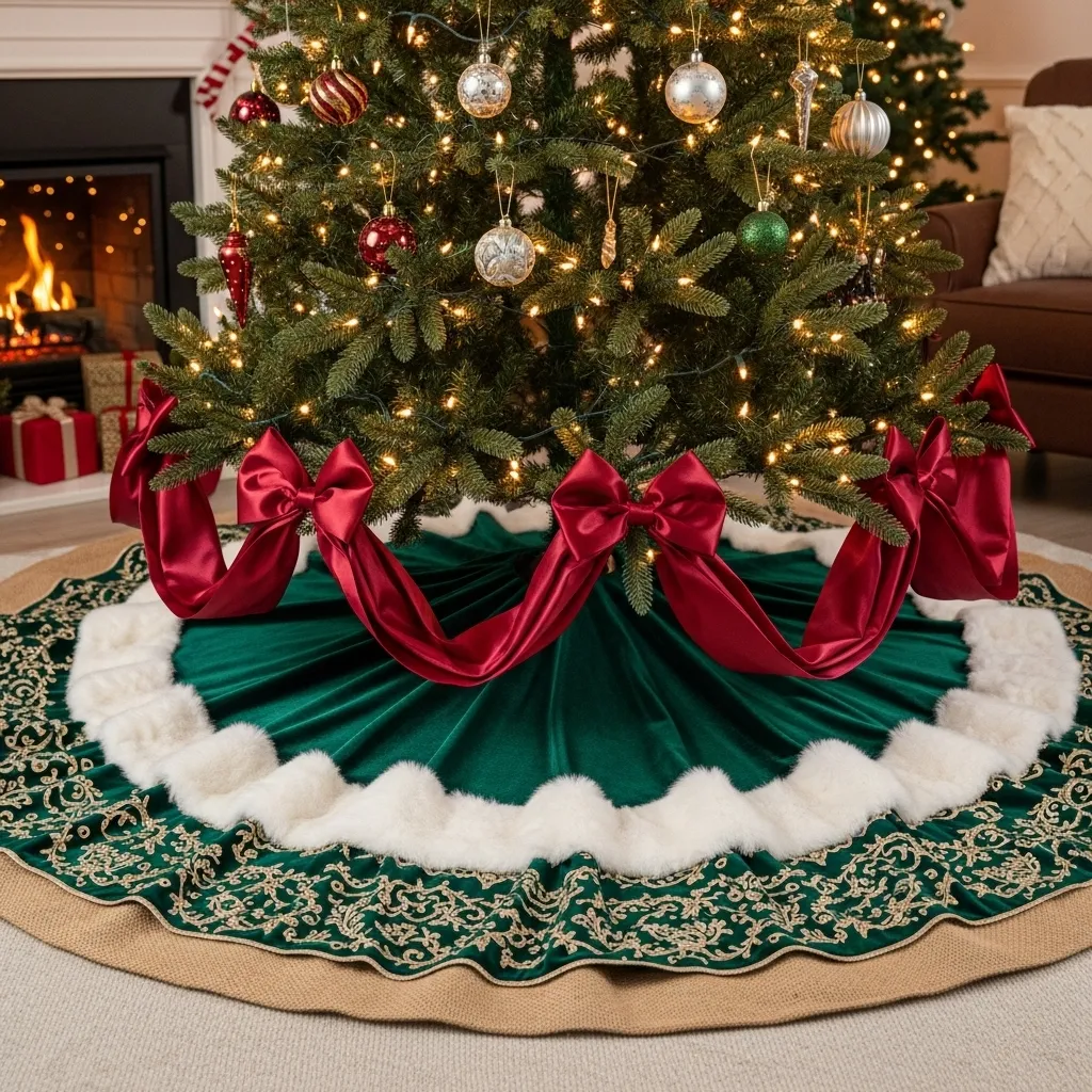 7. Luxurious Tree Skirt and Fabric Underlay