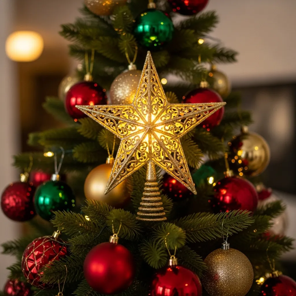 8. Elegant Tree Topper with a Classic Style