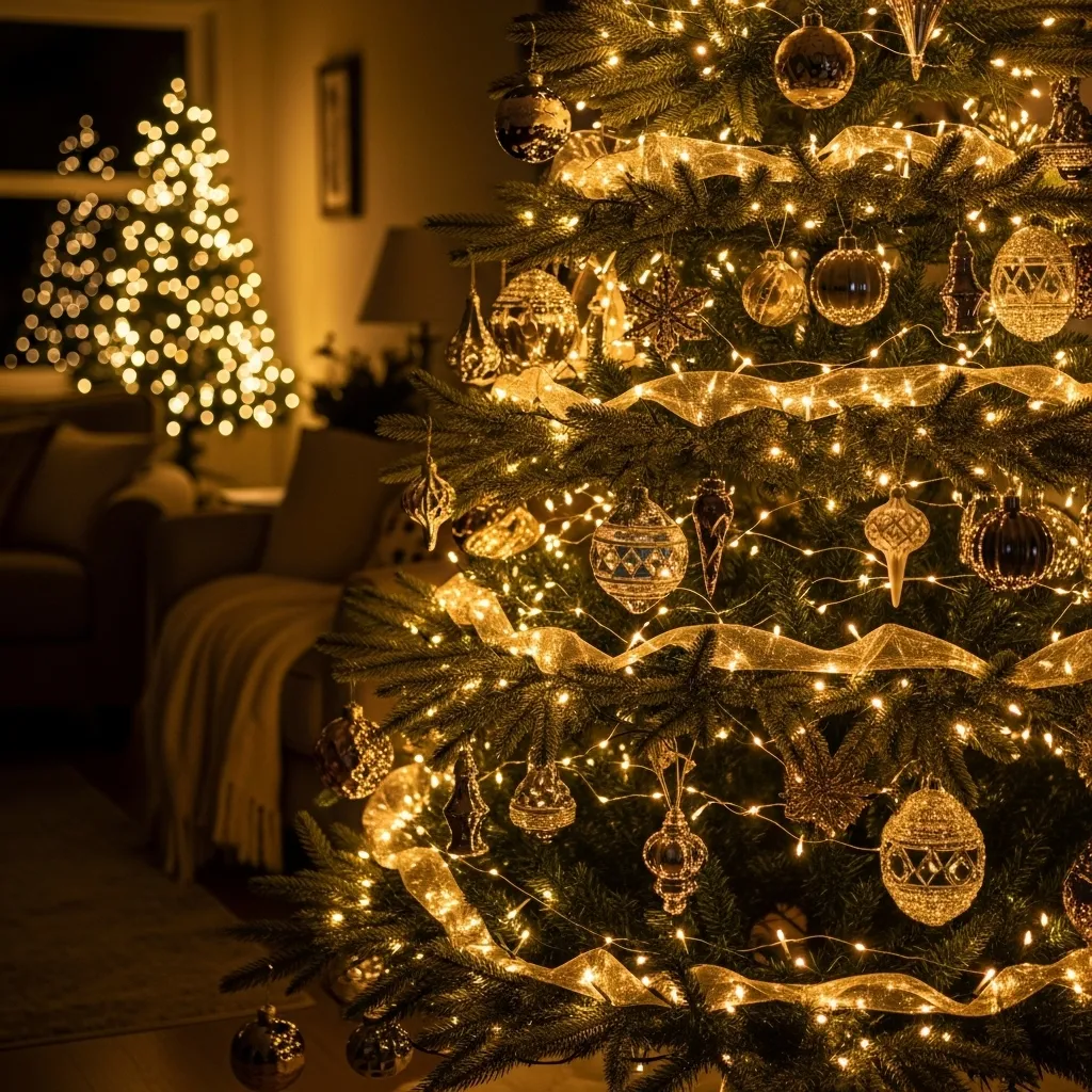 - Use velvet ribbons in rich hues like deep red, green, or gold, draped gracefully across the branches.