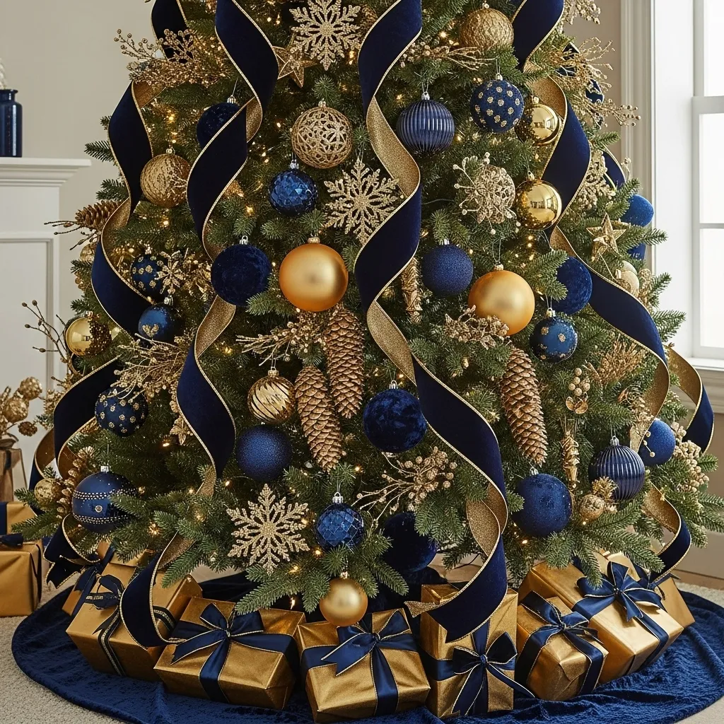 Why It Works: The combination of navy and gold is both bold and elegant, creating a sophisticated Christmas tree that exudes luxury and warmth.