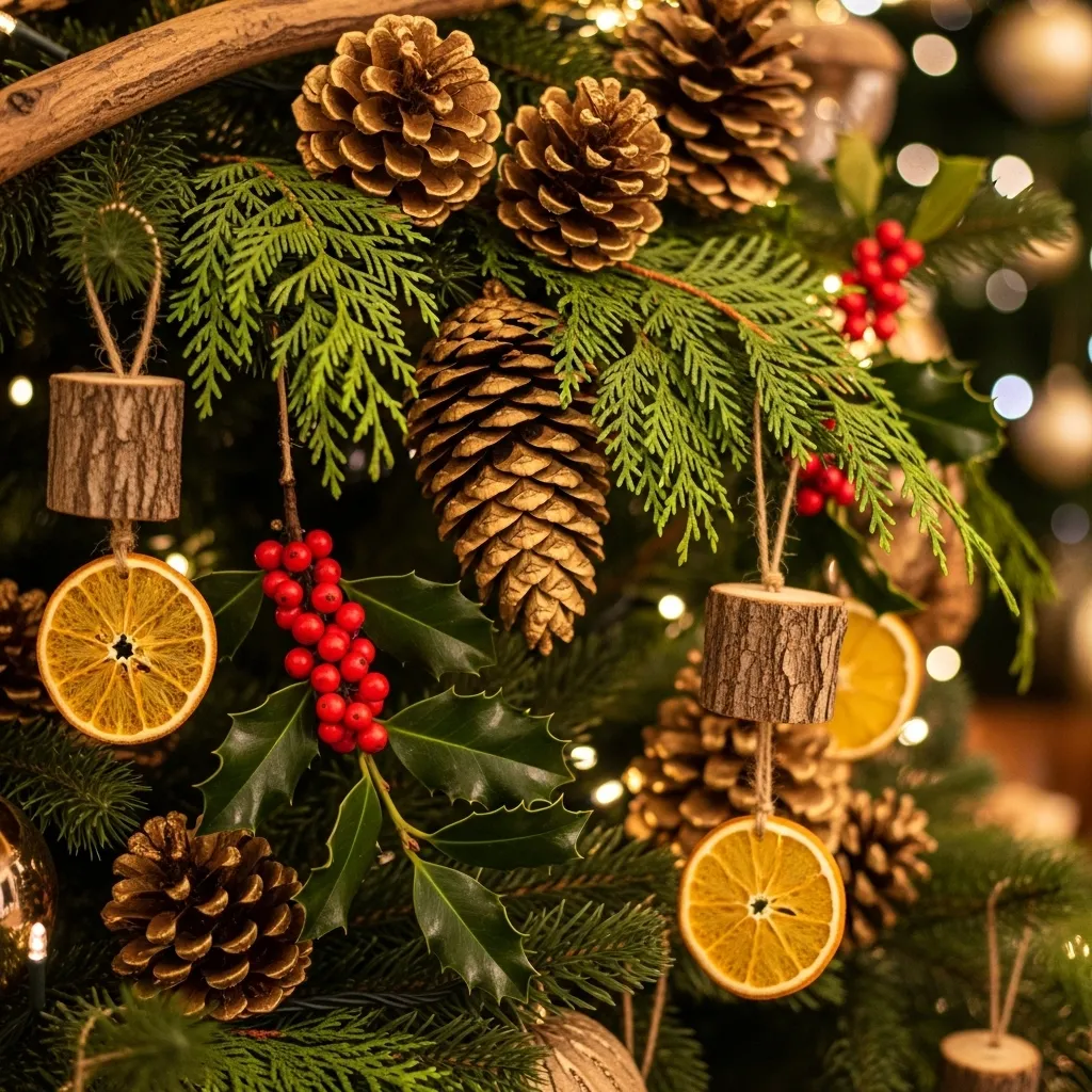 - Consider using wooden ornaments or dried citrus slices to add even more natural texture.