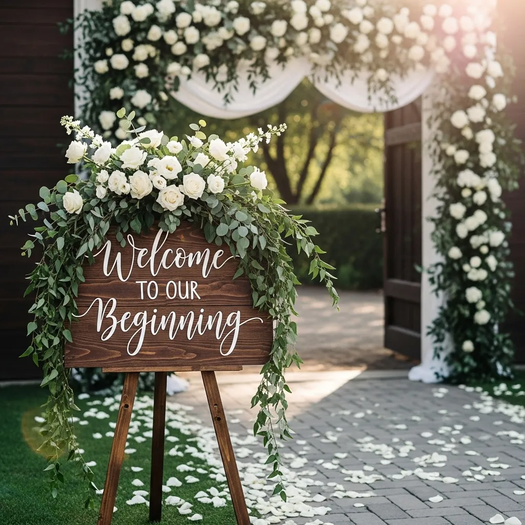 The entrance is the very first impression your guests will have. Whether it’s the doors of a church, the gates of a garden, or a simple pathway, make it feel welcoming. Consider floral arrangements, lanterns, or a personalized welcome sign that sets the tone for the event.