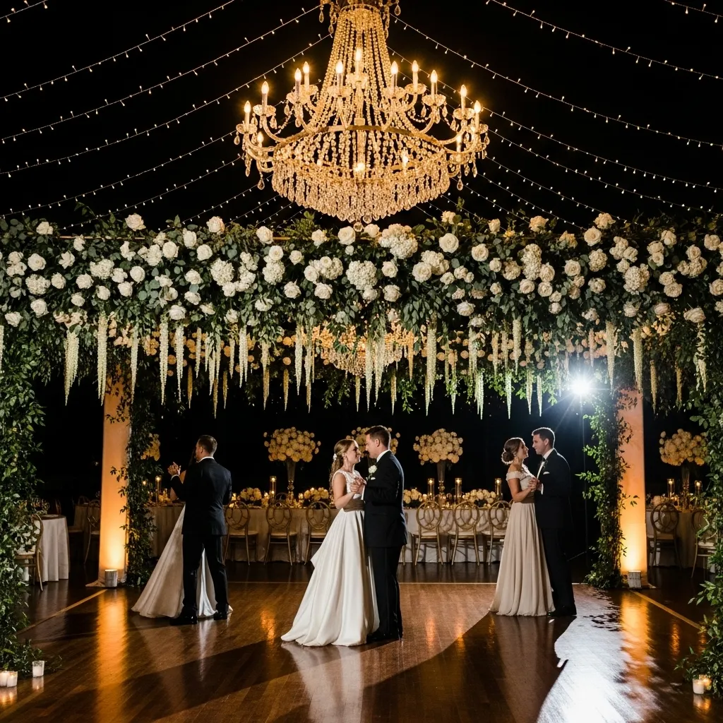 Pro Tip: Create a focal point above the dance floor, such as a chandelier or floral installation, to draw guests in and set the mood.
