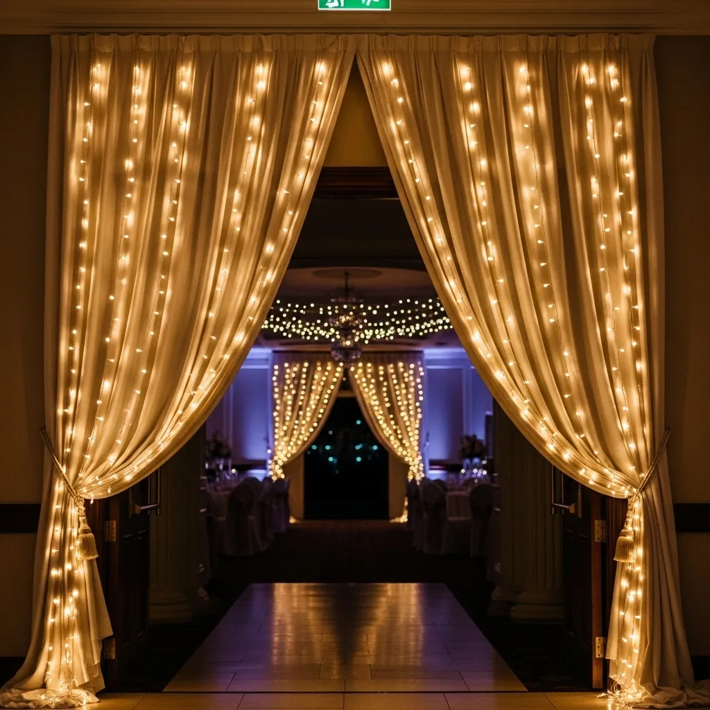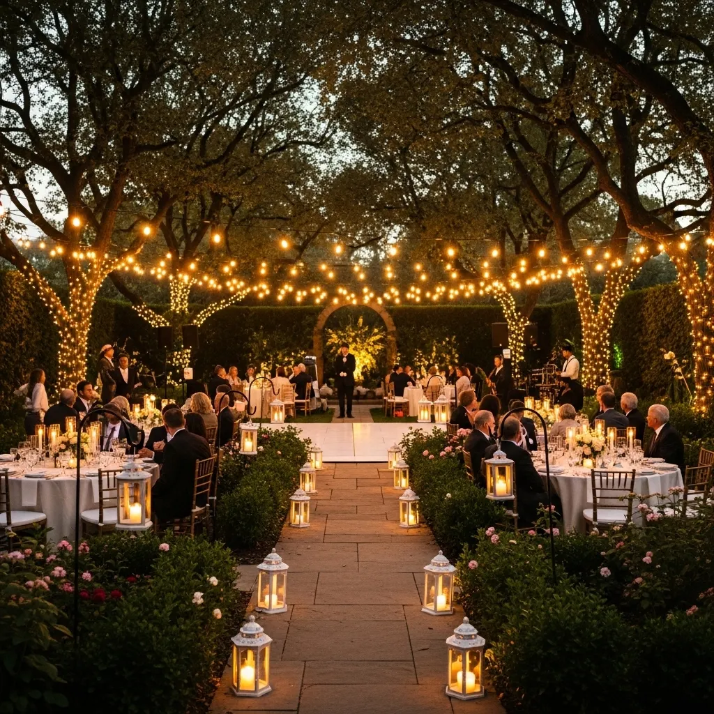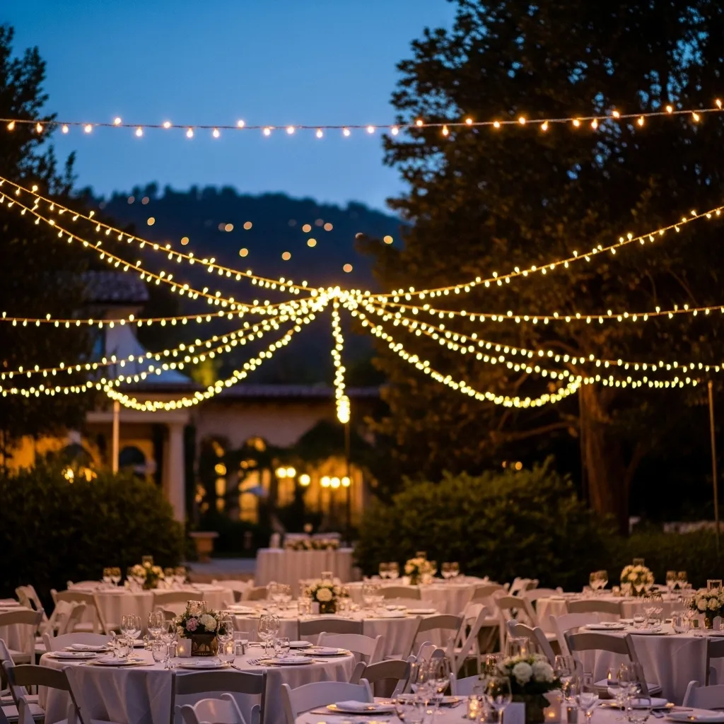 Lighting transforms the mood of your wedding. String lights, chandeliers, lanterns, or uplighting can completely change the atmosphere from casual to elegant. Soft, warm lighting creates intimacy, while colorful lighting adds energy to the dance floor.