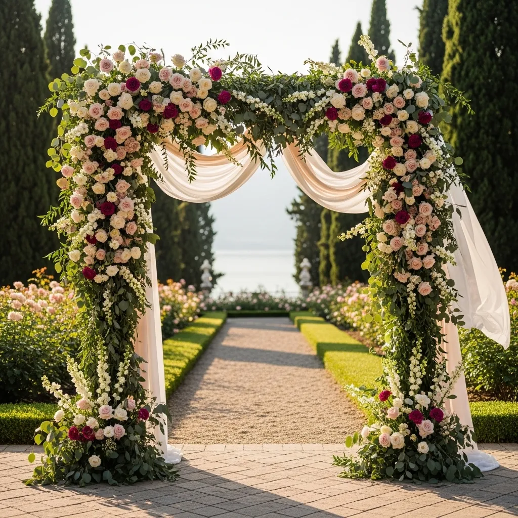 Pro Tip: Choose a backdrop that works well in photos. Elements like arches or draped fabric create depth and make the pictures more striking.