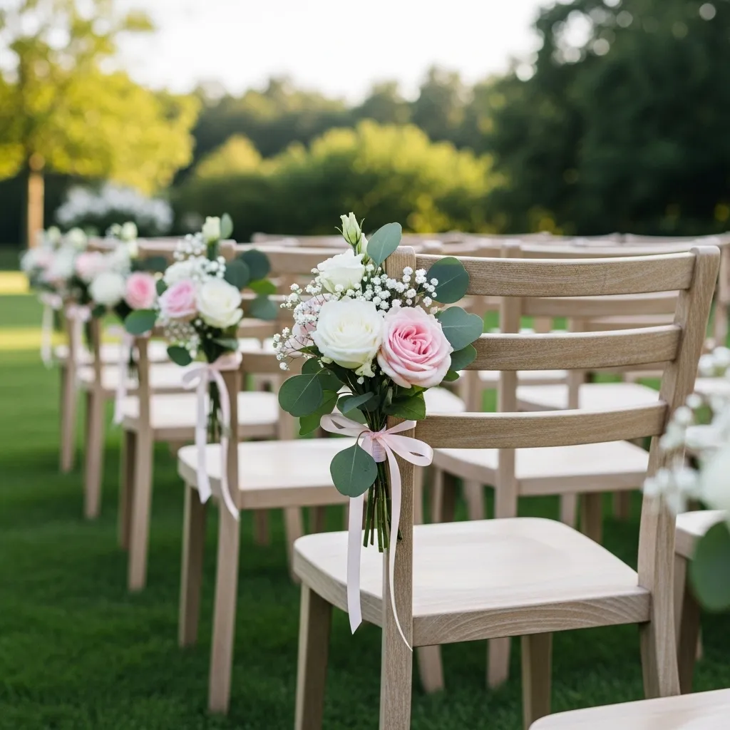 Chairs may seem like a minor detail, but they contribute to the overall atmosphere. Simple touches like chair sashes, floral ties, or personalized name cards add charm. For outdoor weddings, wooden or vintage-style chairs can bring warmth and texture to the setting.
