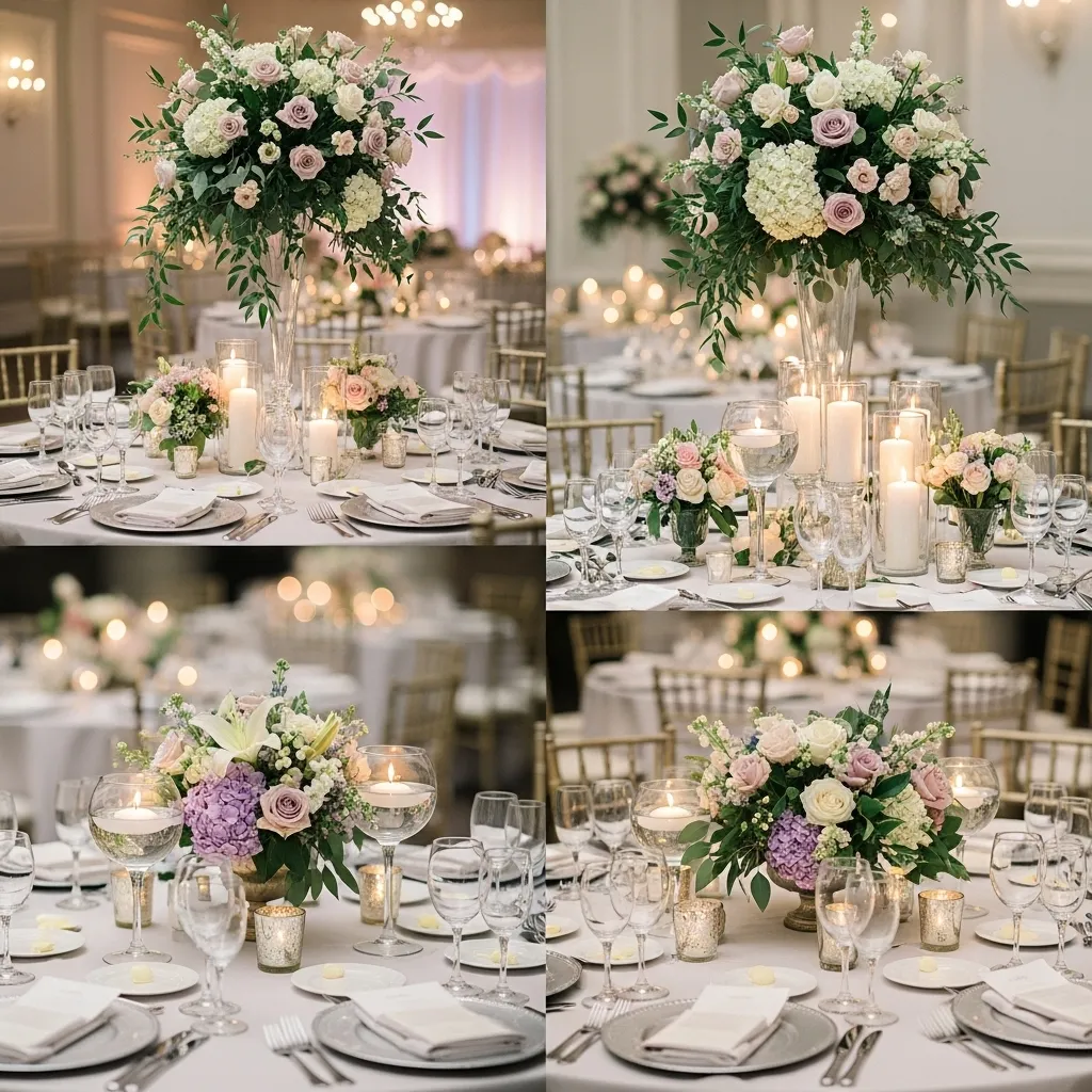 Styling Tip: Mix centerpiece heights for dimension. Pair tall vases with shorter arrangements to create visual balance.